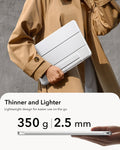 This iPad case features a strong magnetic attachment, durable materials for long-lasting use, and full support for Apple Pencil Pro with wireless charging compatibility. Its slim, lightweight design offers easy portability, while the front cover doubles as a stable stand for viewing, typing, and drawing.