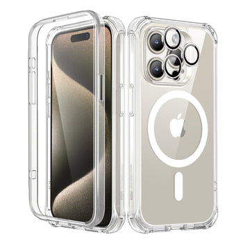 2-teilige robuste MagSafe-Hülle mit integriertem Displayschutz aus gehärtetem Glas und einzelnen Linsenschutzfolien