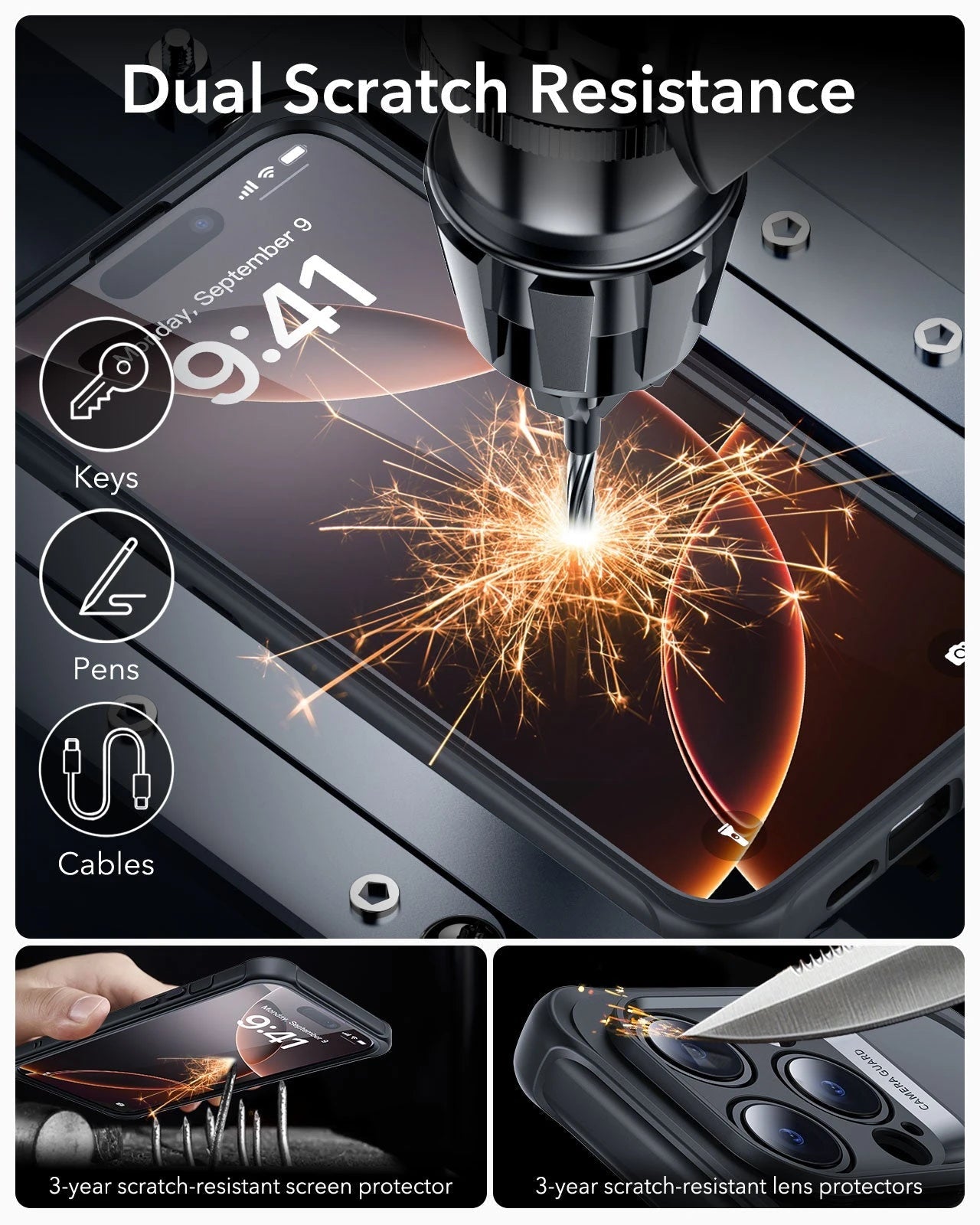 2-teilige, robuste MagSafe Hülle für das iPhone 16 Pro Max mit integriertem Displayschutz aus gehärtetem Glas und einzelnen Linsenschutzfolien
