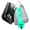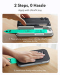 Simple 2-Step Application: 1) Place the phone screen down into the UltraFit tray and close the lid; 2) Hold the cover firmly while pulling the tab