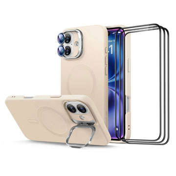 iPhone 16 Cloud Soft Case with Stash Stand Protection Bundle - Light Tan
