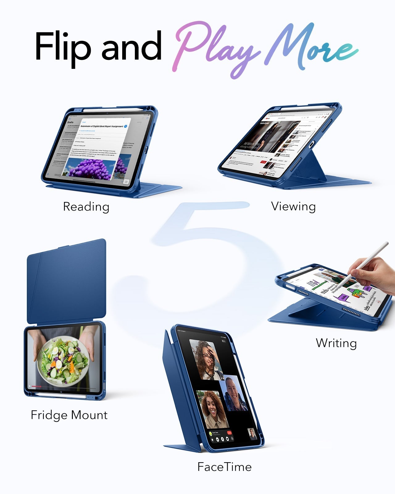Multiple Use Modes: features 45° and 60° for viewing, 25° for writing, suitable for watching videos, working, FaceTiming, or sketching