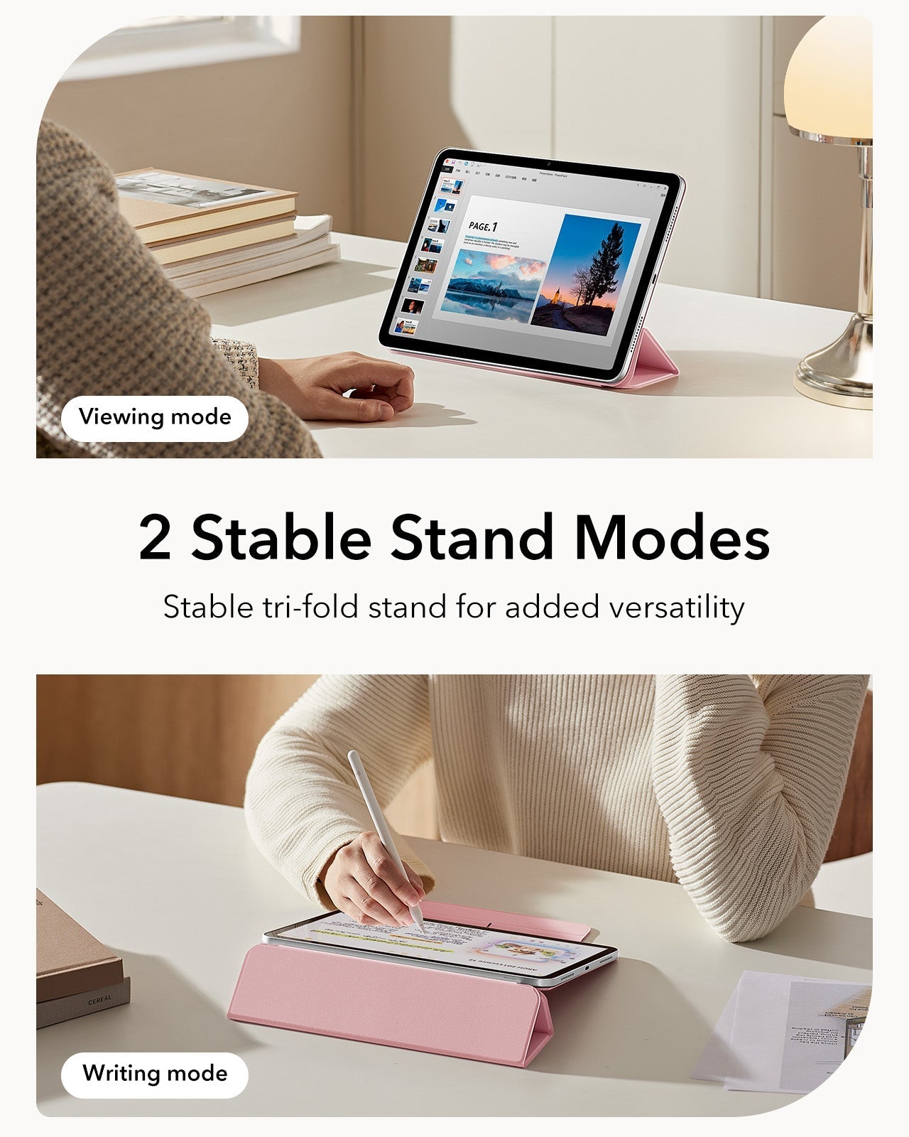 Ultra-Stable Stand: the magnetic trifold cover folds into a stable stand for viewing or writing, offering suitable angles for watching shows or taking notes with your stylus