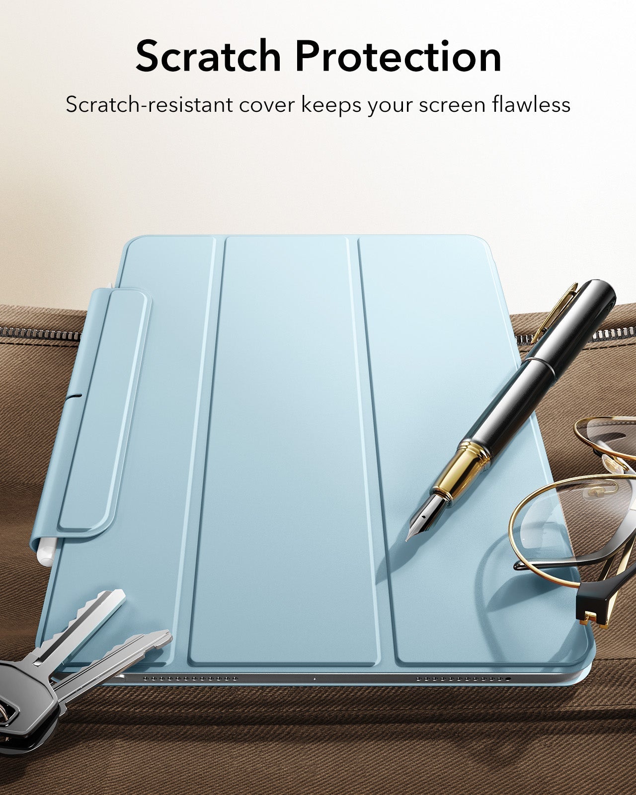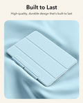 This iPad case features a strong magnetic attachment, durable materials for long-lasting use, and full support for Apple Pencil Pro with wireless charging compatibility. Its slim, lightweight design offers easy portability, while the front cover doubles as a stable stand for viewing, typing, and drawing.