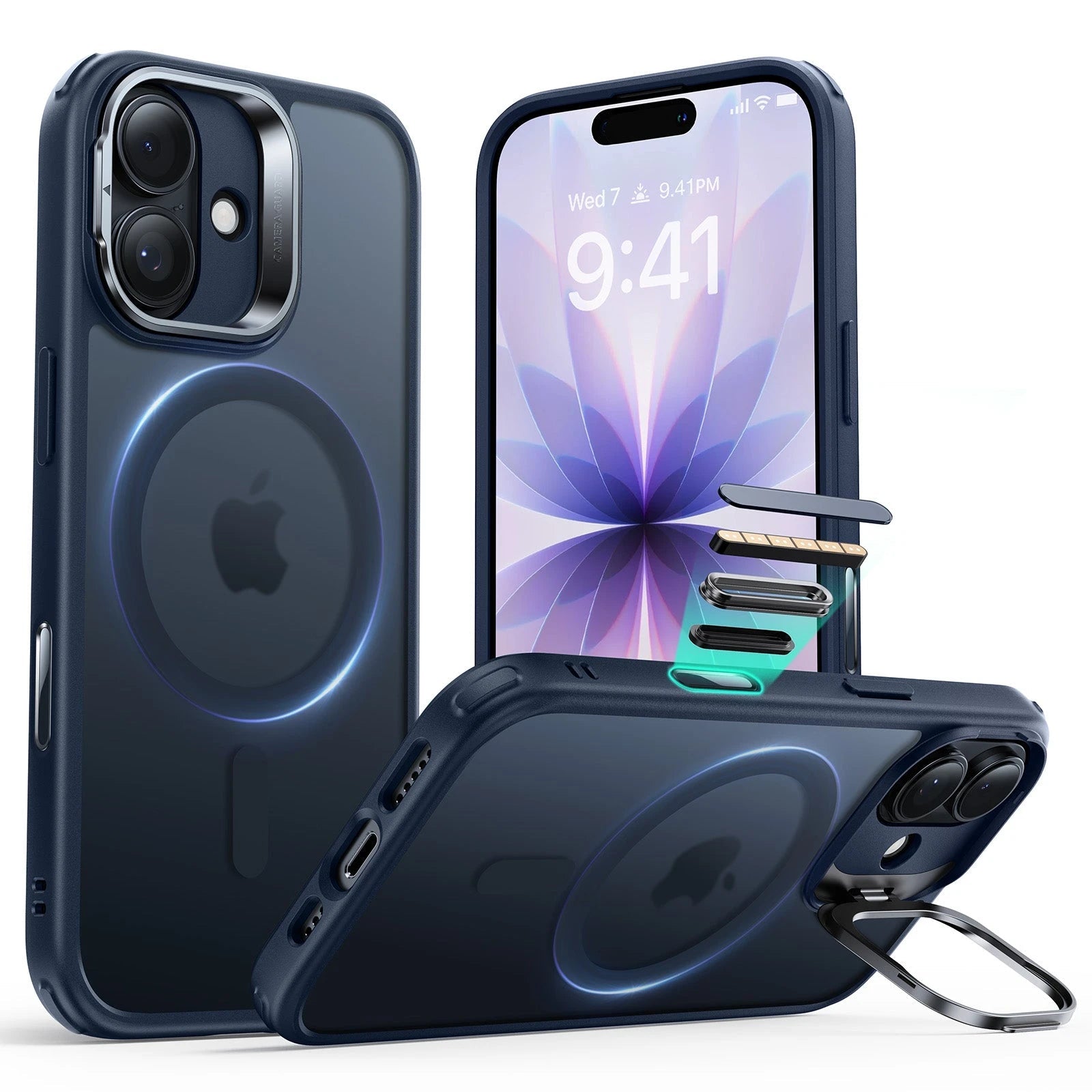 iPhone 17 Classic Hybrid Magnetic Case (Camera Control, Stash Stand) - Frosted Blue