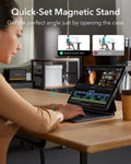 Support magnétique à réglage rapide : des aimants ultra-puissants combinent parfaitement l'étui et la tablette pour vous permettre d'ouvrir facilement le support à l'angle parfait pour taper ou naviguer