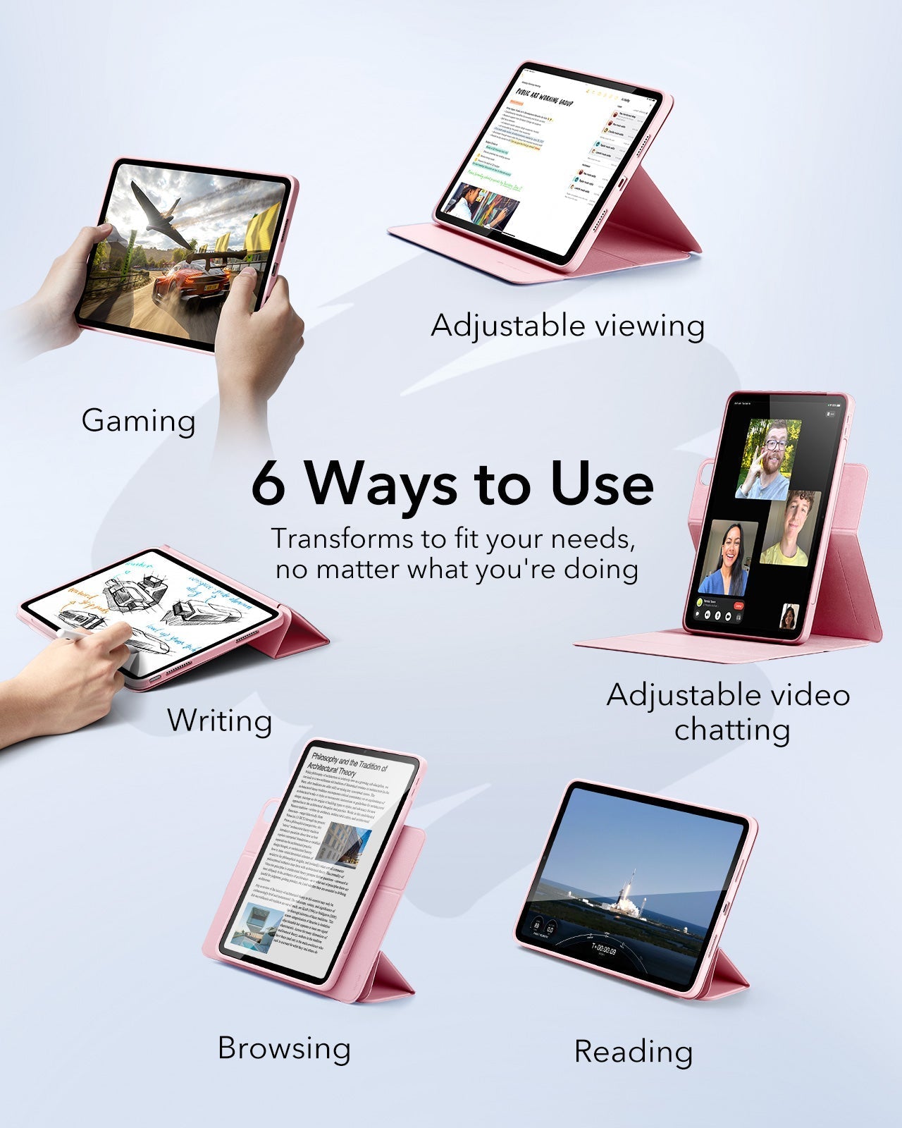 Transform your iPad with 6 use modes for work, play, and gaming. The magnetic cover doubles as a stand while providing full protection. Keep your Apple Pencil Pro or Pencil (USB-C) secure and charged—perfect for everyday use.