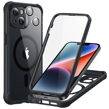 Coque MagSafe robuste en 2 parties avec protecteur d'écran en verre trempé intégré et protecteurs d'objectif individuels
