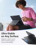 Profitez d'une visualisation ultra-stable en mode paysage et portrait grâce à notre support magnétique, doté d'une surface de support élargie pour une stabilité accrue. Conçu avec une prise en main fine et légère et un porte-stylet pratique.