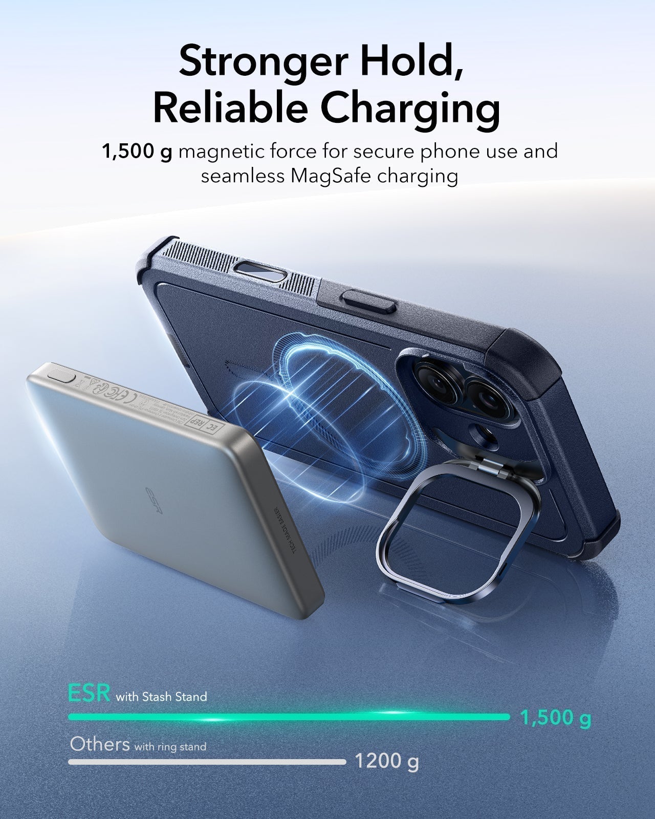 1,500 g magnetic strength for secure phone use and seamless MagSafe charging