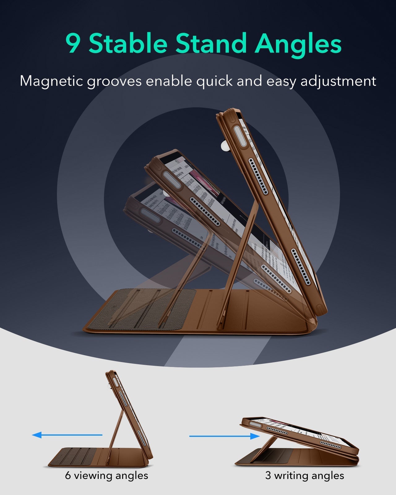 The all-in-one magnetic iPad case with a detachable stand gives you 6 viewing angles and 3 writing angles. Easily switch between portrait and landscape, while keeping your iPad fully protected for work, creativity, and entertainment.