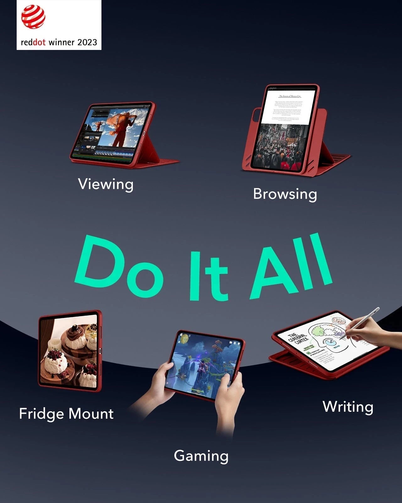 Powerful Versatility: achieve up to 9 different angles, 6 for viewing and 3 for writing, via the dual support brackets and 6 magnetic grooves, then instantly detach for hands-on gaming or to magnetically attach to your fridge