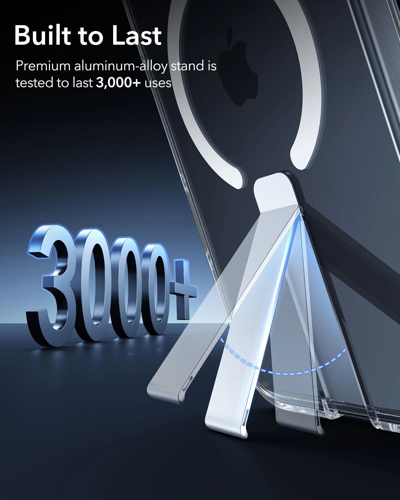 The case has a tough acrylic back that is scratch-resistant, along with a premium aluminum-alloy stand that can withstand over 3,000 uses.