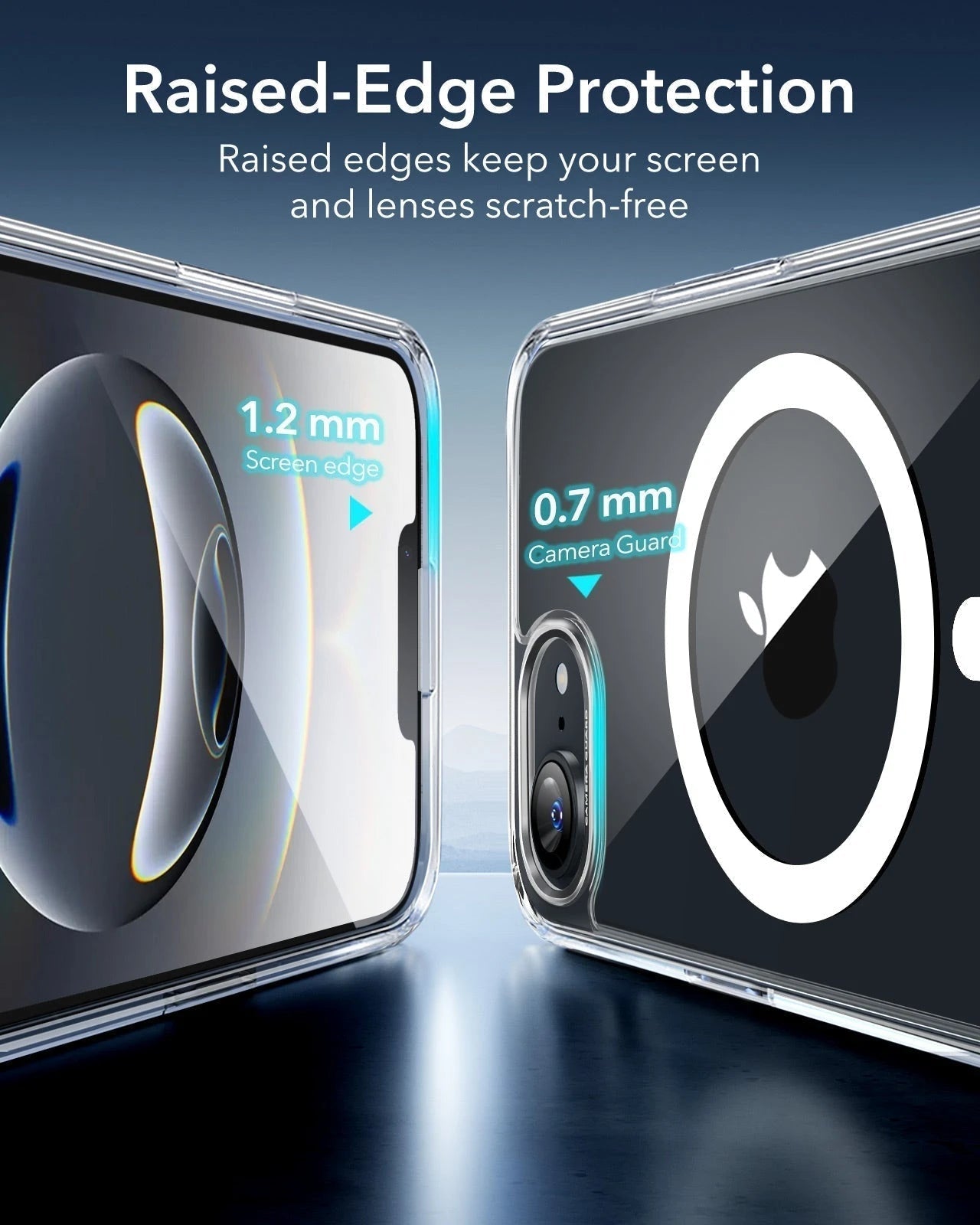 Raised edges keep your screen and lenses scratch free