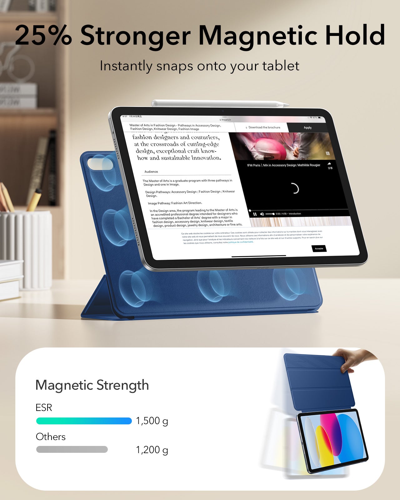 Find the perfect angle via the dual-mode, easy-fold, super-stable stand.